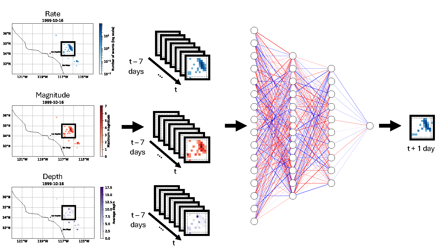 F. Dervisi, M. Segou, P. Poli, B. Baptie, I. Main, and A. Curtis, “Towards a deep learning approach for short-term data-driven spatiotemporal seismicity rate forecasting,” Earth, Planets and Space, vol. 77, no. 185, 2025. [Online]. Available: https://link.springer.com/article/10.1186/s40623-025-02241-6
